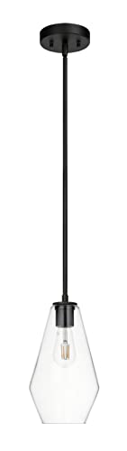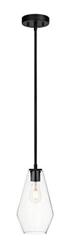 FEATURE: This glass pendant light offers a modern but farmhouse design that fits well with a variety of styles and décors. Matte black 1 light kitchen pendant light fixture creates a sleek, clean look while the bell-shape clear glass shade imparts a soft luminous light. Install as a single dining light fixture or in multiples, these hanging kitchen lights show a warm astmophere.