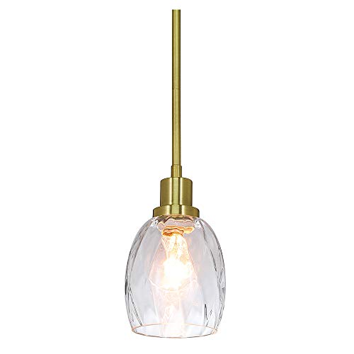 SIMPLE DESIGN: Adjustable Hanging Kitchen Lighting with clear faceted glass in satin brass finish is simple and modern design that gives you a timeless retro vintage touch and a clean modern aesthetic in your house. This 1 light brass pendant light also perfect for Bedroom, Living room, dining room,coffee, kitchen, hallway, bar club and loft and any living areas