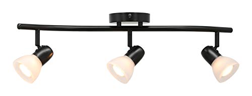 FEATURE: Hardwired, track lighting with alabaster glass with adjustable track heads in matte black finish; of which is perfect for highlighting a work space or drawing attention to special objects. Mounting this kitchen track light will create an accenting an art wall, or simply adding ambient illumination to a living space.