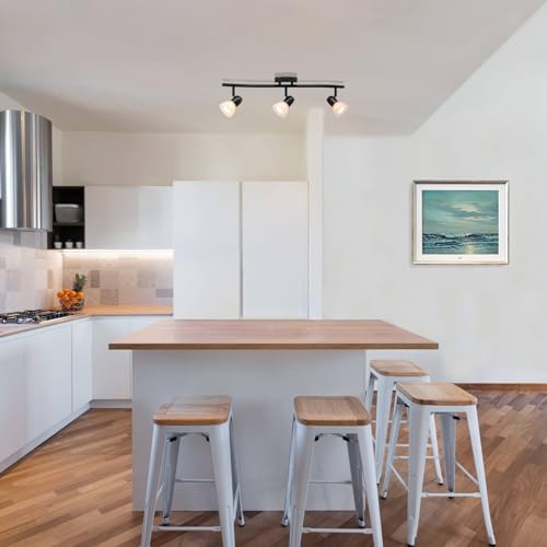 MODERN DESIGN: Hardwired product. 3 light black track ceiling light with glass in curved shaped tube is simple design and this track light bar has strong and focused beam that is perfect for kitchen, bathrooms, bedrooms, entryways, kitchen, dinning and living areas