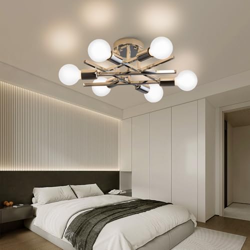 ?Premium Material?This Chrome semi-flush mount ceiling light boasts a high-quality metal base with a sleek, modern design that is both durable and stylish. The lightweight solid light rod makes installation a breeze, and its recyclable materials support environmental sustainability. Ideal for any indoor space—be it your bedroom, kitchen, or dining room—this close to ceiling light fixture adds a touch of sophistication to your home.