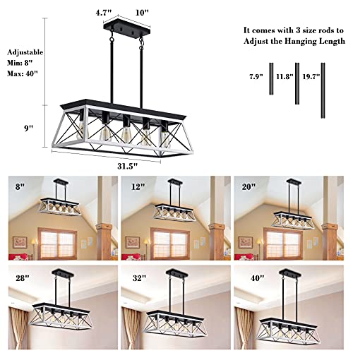 ?Height Adjustable Dining Room Lighting?The length of the island pendant light is adjustable. 2 pairs of rods(20cm+30cm+50cm) for you to decide the appropriate hanging rods, ideal for high or low, flat or sloped ceiling