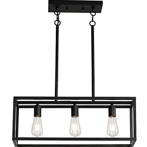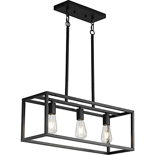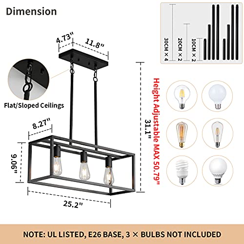 ????[ Industrial Kitchen Island Light ] - The kitchen island light is made of metal, black metal finish, rectangular design, and comes with 3 bulb bases, which can provide enough lighting for the bar, foyer and hallway. At the same time, it can also be installed in sloped/flat ceilings. It will be an ideal choice for home lighting.