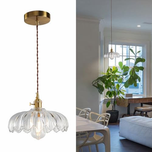 Illuminate your space with our stunning glass pendant light. Perfect for any kitchen or dining area, it adds a touch of elegance and sophistication to your home. Golden metal E26 lamp head and clear glass perfect combination?we recommend installing the E26 ST64 bulb.
