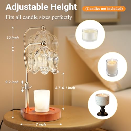 ?Height-Adjustable Candle Warmer?YDDQR adjustable candle warmer is designed to accommodate all jarred scented candles and wax melts. Height easily adjusts between 3.6 inches and 6.1 inches, ensuring even heating and preventing wax waste. This guarantees optimal fragrance diffusion and extends candle life. The solid wood base features non-slip pads for stability and protects furniture from scratches.