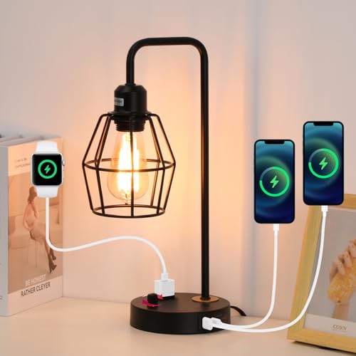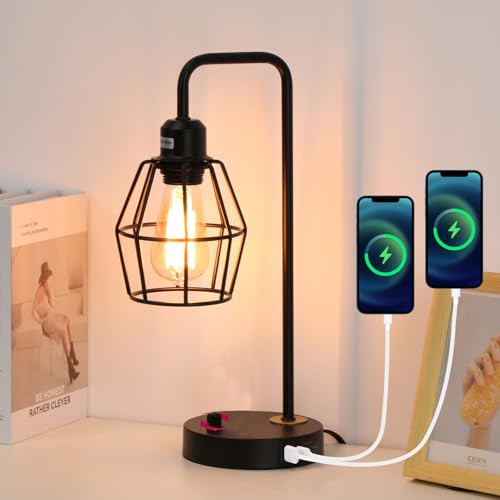 ?Industrial Design?The antique nightstand lamp has a tubular metal body and metal wire cage shade, featuring the industrial look. The steampunk lamp keeps up with the latest retro lighting trend, perfect for living room, dining room, nursery, study, or office