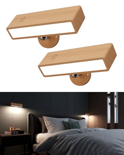 YiLaie Wall Sconces Set of 2 Rechargeable Wall Lights with 360 Rotation,Dimmable Battery Operated Wall Sconce,Magnetic Wall Light for Bedroom,Wireless Wall Mount Light for Picture,Living Room(2 Pack)