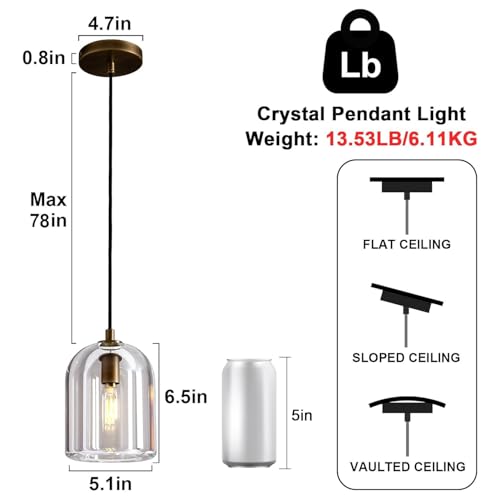 Product Size: Crystal pendant light can be adjusted according to different needs and different ceiling heights, the crystal height is 6.5 inches, the diameter is 5.1 inches, and the crystal thickness is 1in. The modern pendant light comes with an adjustable braided cord of 80 inches. It can well meet your various needs and is easy to install.