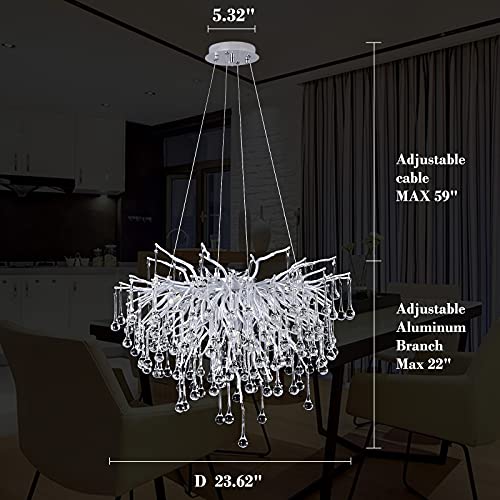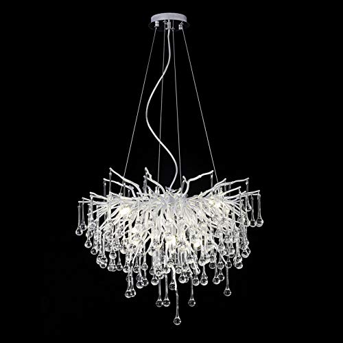 ?Exquisite Workmanship?The surface of the aluminum metal through a fine frosted treatment, make this modern chandelier more rich texture and advanced sense. Handmade crystal teardrop reflect light and make the whole room brighter.