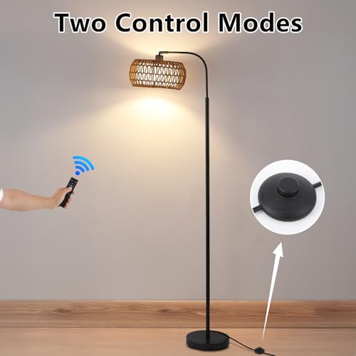 3-in-1 Standing Lamp with Double Drum Shade: This boho rattan floor lamp comes with a hand-worked woven rattan and linen drum lampshade, has 3 display effects. The removable lampshade can be freely combined according to your preference. The floor lamp is supremely versatile no matter where you place it, you could use it as a reading lamp?office lamp or lamp for living room