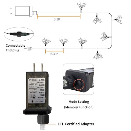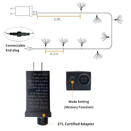 Extendable String Lights: Each fiber optic string light has an end-to-end plug(male and female safe Plug), which could be extended to a maximum of 5 light chains, from 33ft to 165ft