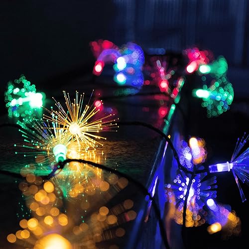 Mini Firework Fairy Lights: Fiber optical strands are bent out to create a mini firework shape and introduce a delightful glow of starry light with LED. The starburst fiber optical fairy lights create a fabulous accent that can be used for Christmas, weddings, parties and any other celebration occasions