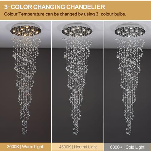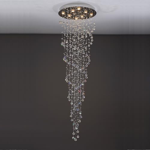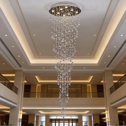 High Ceiling Chandelier:Our high ceiling chandelier feature top-quality K9 crystals that create a luxurious and sparkling effect. The polished stainless steel canopy ensures reliable load-bearing capacity.Its spiral sphere raindrop design elevate your space,making your room more luxury and beautiful.
