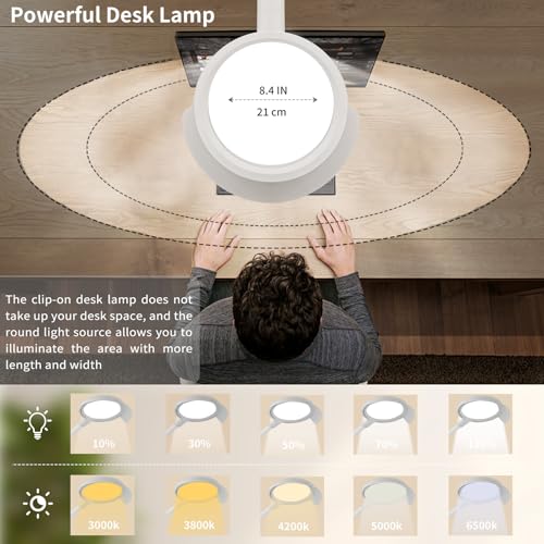 25 MODE ADJUSTMENTS AND REMOTE CONTROL: The table lamp with clip has five colour temperature modes (3000k-6500k), five brightness levels (10%-100%) and comes with a remote control, which allows you to turn on the night light mode, four direct-use scene modes and the timer function with just one touch. One light can be used for multiple purposes at the same time for painting, engineering design, night light, home office, live broadcasting, study , tailor, nail art .