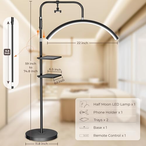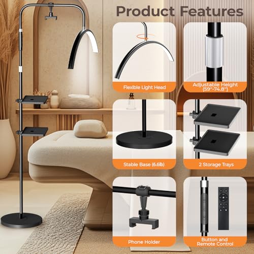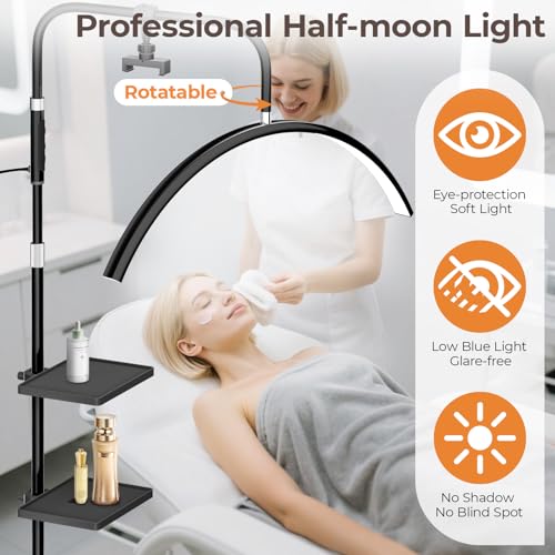 Fully Adjustable Height & Gooseneck: Easily customize your setup with the adjustable height from 59" to 74.8". The flexible gooseneck design offers 360° rotation for precise light direction, making this half moon lamp ideal for both sitting and standing use in any salon or home studio.