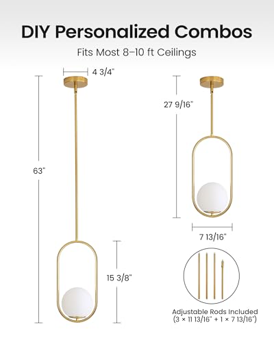 Upgrade Material: The simple and stylish design aligns with modern home décor styles. It is crafted from high-quality polished brass and features white spherical glass lampshades that offer soft lighting, durability and resistance to fading