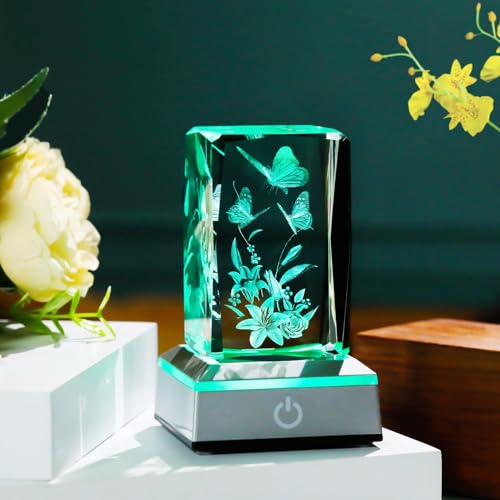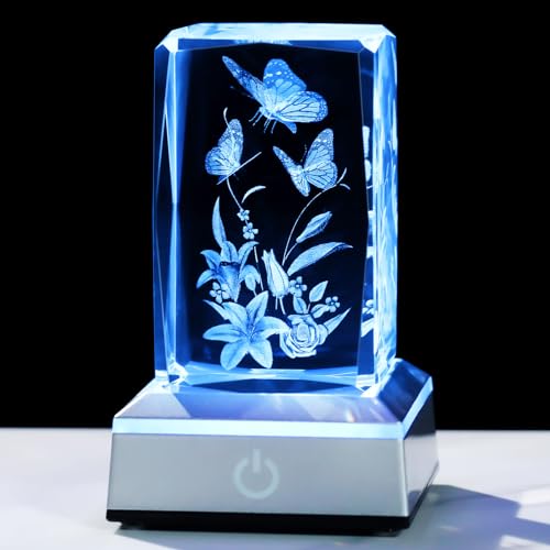 Material & Laser Engraving: The butterfly and flower images a reengraved by laser, it is clear, vivid and stereoscopic, and will never be fade or worn away. The cuboid is made of K9 crystal, it is not easy to wear or tarnish, and can be stored for many years