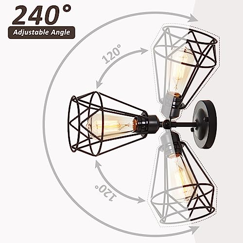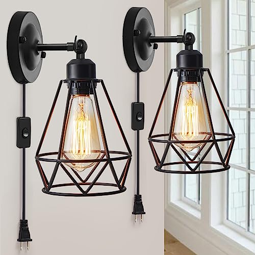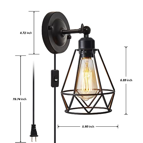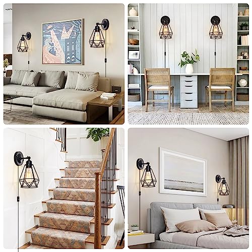Adjustable angle design: 2-pack industrial plug in wall sconces with a metal body in a matte black finish. Black wall sconce features 240 degree adjustable head and vintage & modern wall sconce lighting can add luster to your home easily