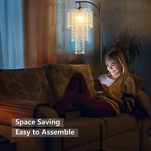 ?3 Tier Crystal Shade?The Crystal floor lamp comes with a 3 Tier Crystal Shade, has 10 light color display effect. you can be free to better light color to your preference. Innovative design offers diverse options for everybody,this adjustable floor lamp suit for any decor and is suitable for such style as contemporary, vintage, mid-century, traditional, farmhouse and so the like