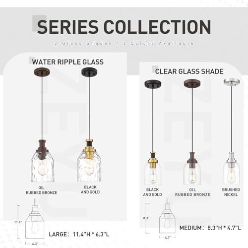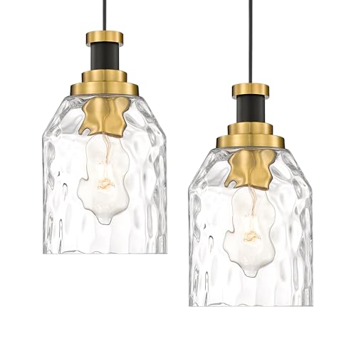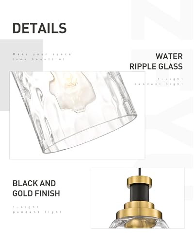 MODERN & ELEGANT: Constructed from high-quality metal featuring a stunning black and gold finish and adorned with a water ripple glass shade, these gold pendant light kitchen island creat a sense of flow and elegance, effortlessly enhancing your space with refined warmth and contemporary elegance.