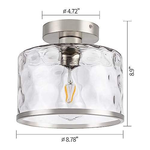 ?Modern & Flush mount ceiling Light fixture?This semi-flush mount farmhouse light fixture perfect combination of brushed Nickel metal and a unique glass.Clear hammered glass casts a nice shadow on the ceiling, creates a romantic atmosphere to your home. Attractive vintage retro and modern industrial charm, Matches most styles of furnishing.