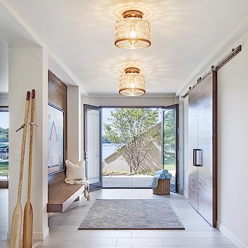 ?Wide Applicationt?This moden clear glass entryway ceiling light with Vintage design, the flush mount ceiling light perfect for Hallway, Entry, Porch, Mudroom, Stairwell, Kitchen, Closet, Kids Room, Dining Room, Bedroom, Living Room, also ideal for commercial areas: Bar, Cafe, Hotel and Restaurant.