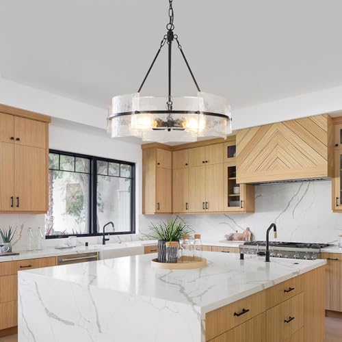 ?Luxury & Modern Design?Modern black chandelier is made of water ripple glass and solid black metal frame; Reflected by the unique glass, the light will be more dazzling, and the matte finish gives an elegant atmosphere. The eye-catching round chandeliers for dining room can easily blend into a various interior styles.