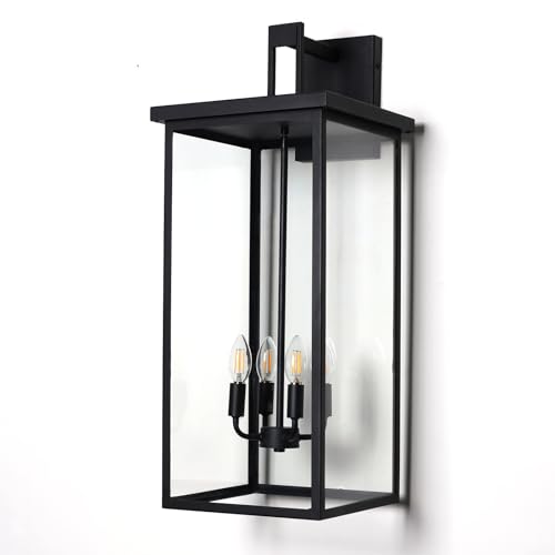 Modern Outdoor Wall Light? Features matte black finish, clear glass shade and waterproof design.Height:30" ;Width: 13" ; Length: 11.8" Compatible with types of E12 bulbs.The Large size exterior wall lighting fixtures is perfect for outdoor lighting needs and creating ambiance for your modern house