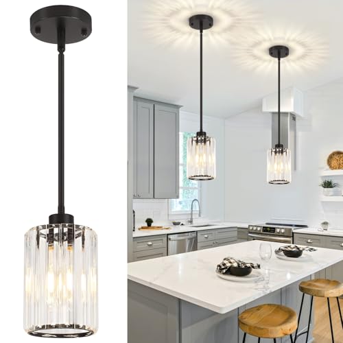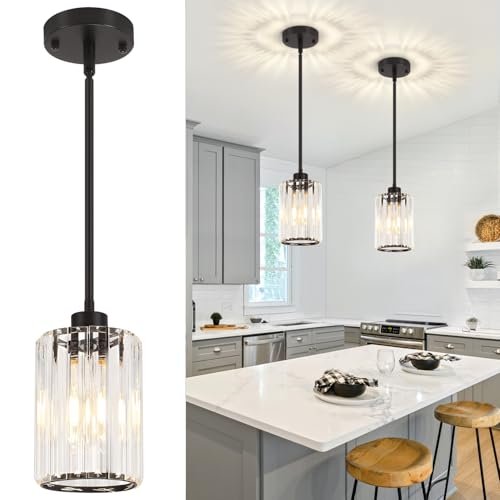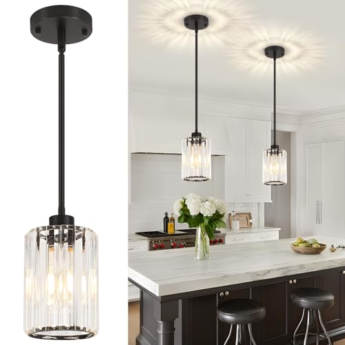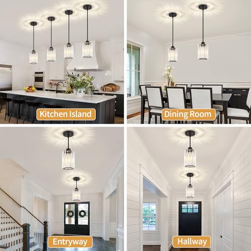 ?Modern Pendant Light?The black pendant lights for kitchen island is made of metal frame and crystal shade.It combines modern and Industrial style that can creates a charming lighting effect for your home.