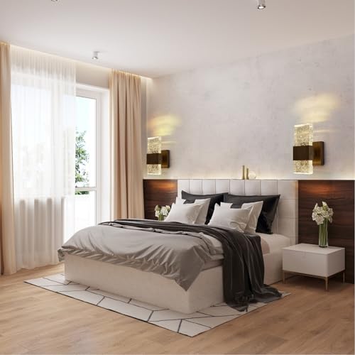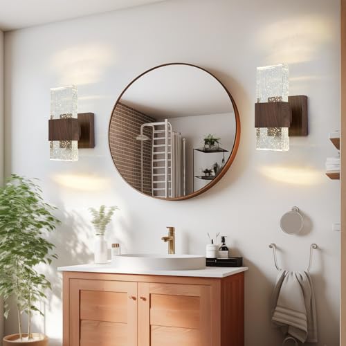 Modern Crystal LED Wood Wall Sconce: This wall light is made of wrought iron and bubble crystal, The walnut finish creates vintage atmosphere and it is perfect addition to elevate the ambiance of any room in your home like living room, bedroom, bathroom